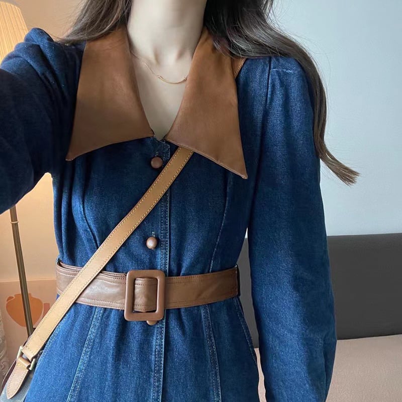 クラシカルな雰囲気が魅力の、デニム風ロングワンピース。