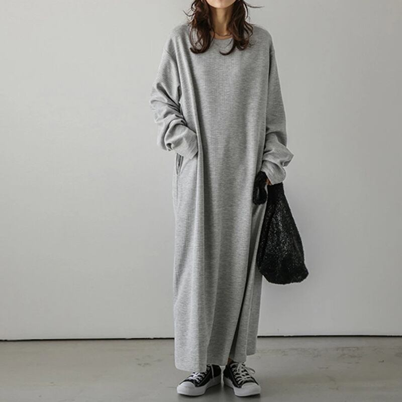 リラックス感のあるシルエットが魅力のロングワンピース。