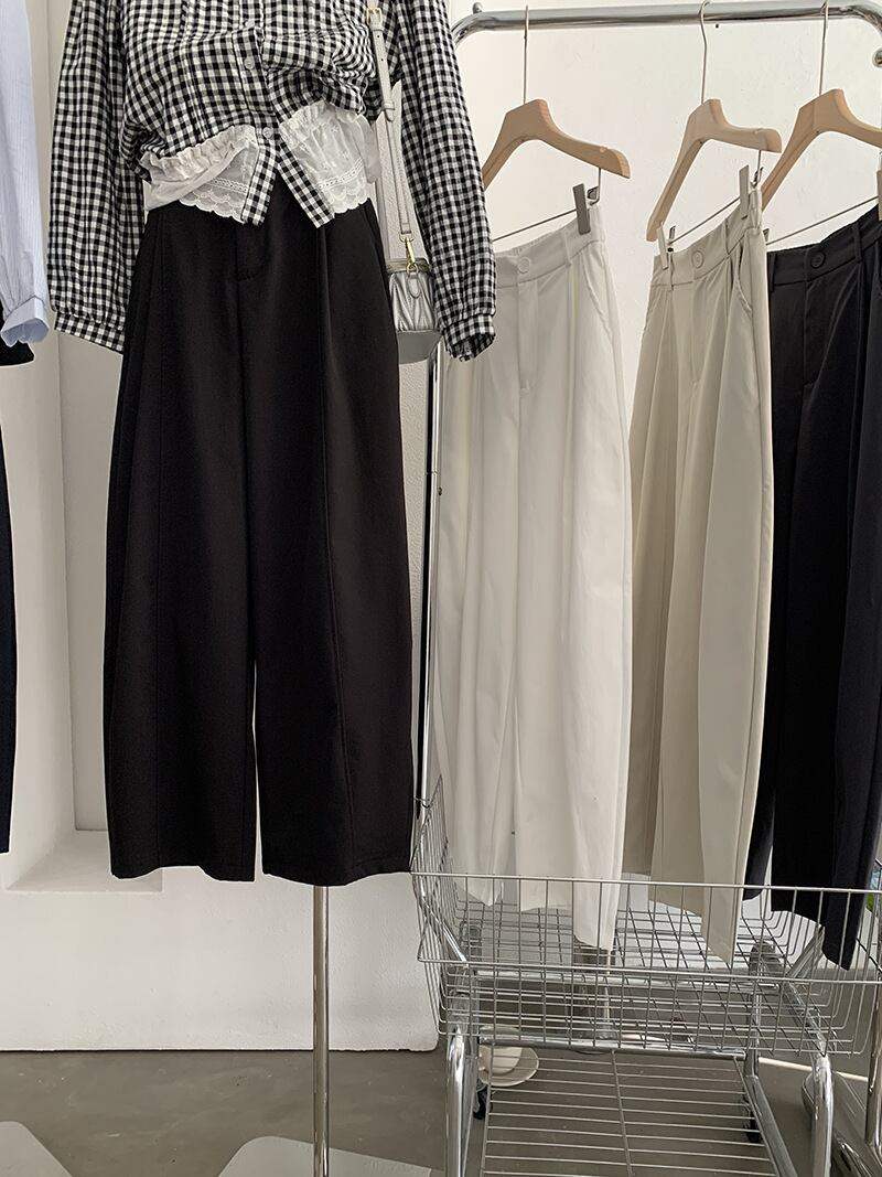 シンプルで洗練されたシルエットが魅力のワイドスラックス。