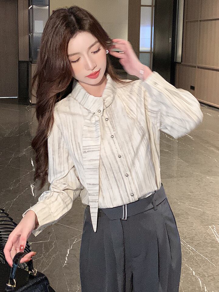 落ち着いたカラーと柔らかなストライプ柄が、大人のきれいめスタイルを演出します。