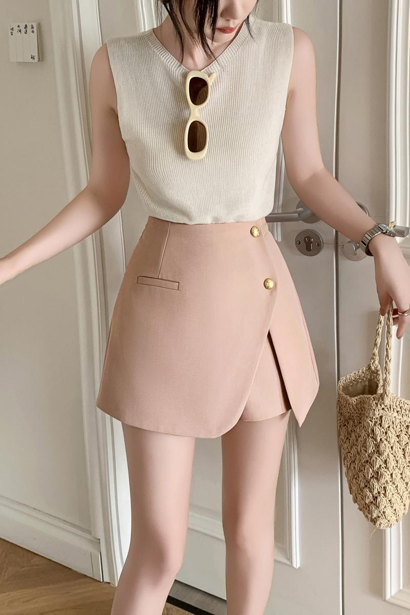 韓国ファッションのような洗練されたシルエットで、脚をきれいに見せてくれるミニ丈ボトムです。