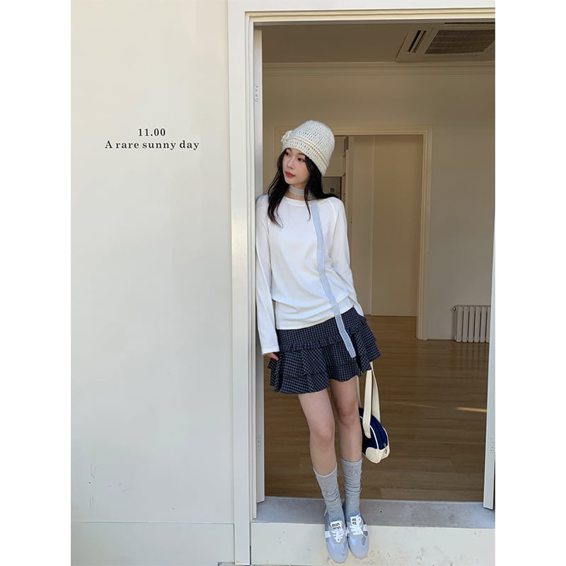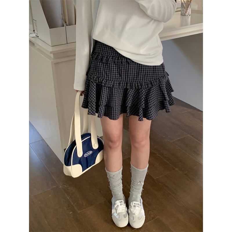 トレンド感のあるチェック柄が魅力のフリルミニスカート。