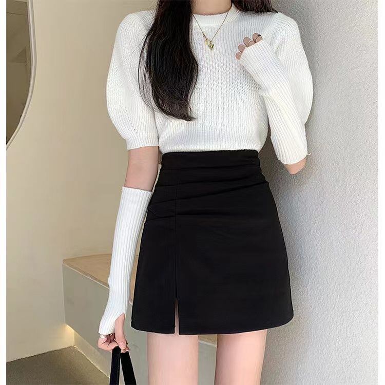 すっきりとしたシルエットに、フロントのスリットデザインを加えたミニスカート。