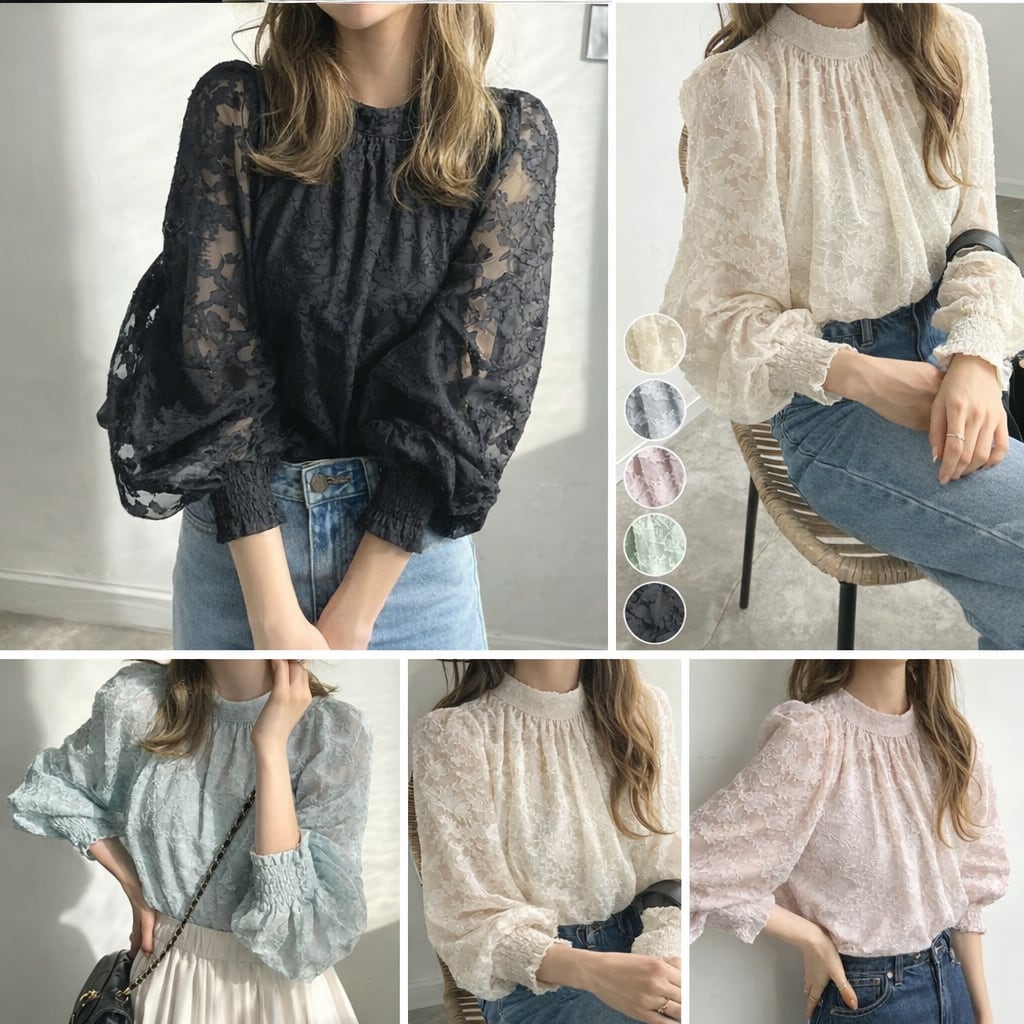 首元のギャザーデザインが、女性らしい印象を演出します。
