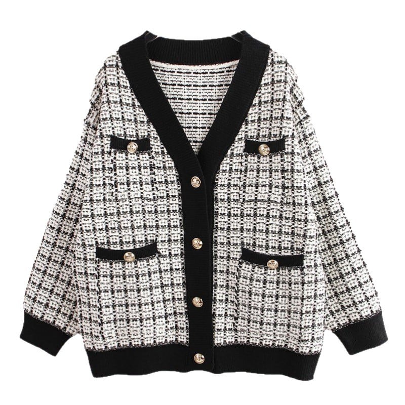 【韓国きれいめ】ツイードニットジャケット 金ボタン