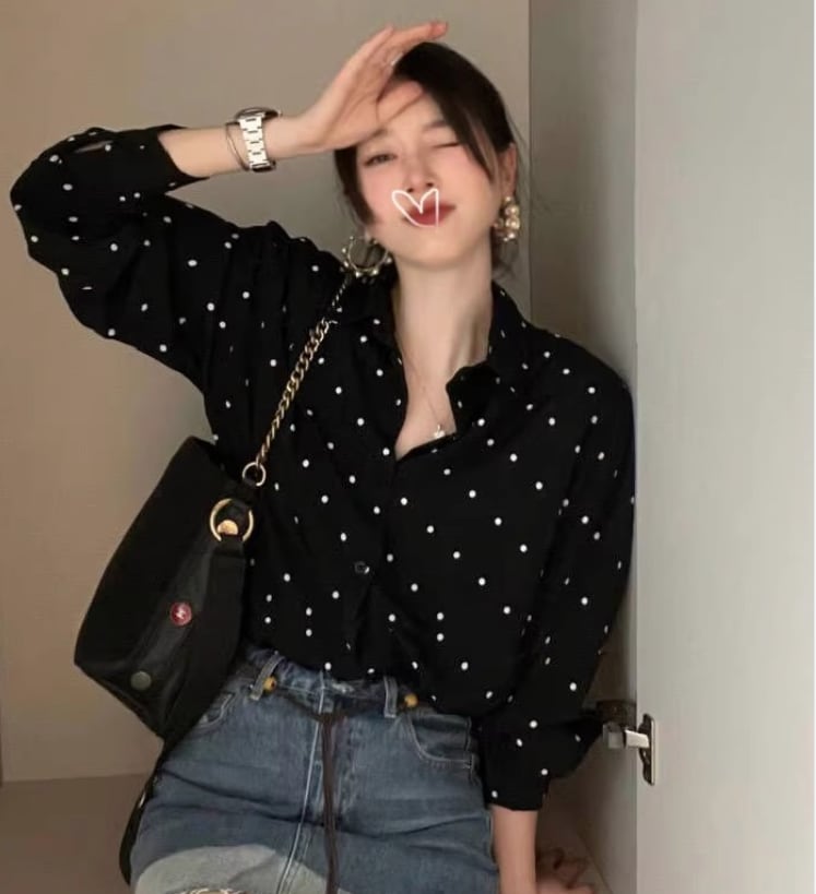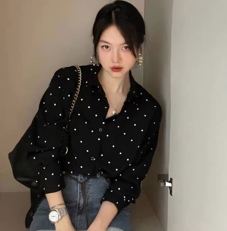 【韓国きれいめ】ドットブラウス|上品カジュアル・着回し万能トップス