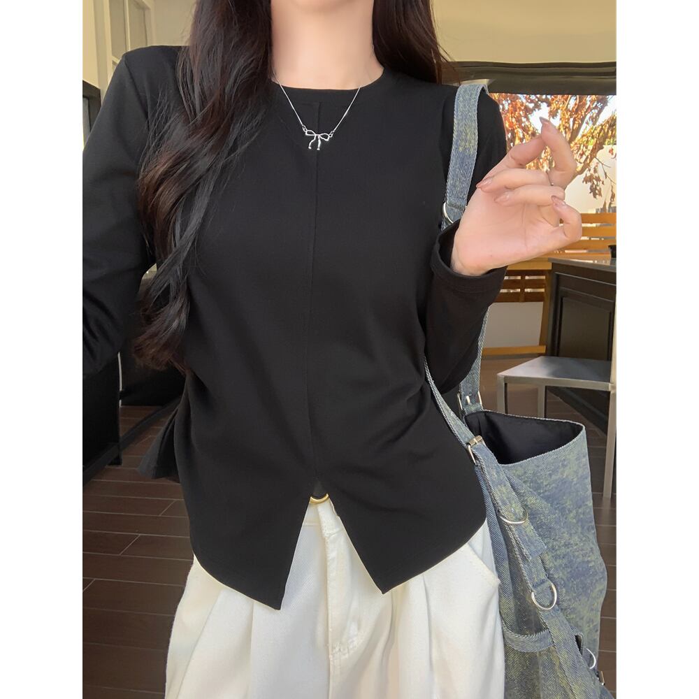 【韓国きれいめ】フロントスリットトップス|美シルエット・細見えデザイン